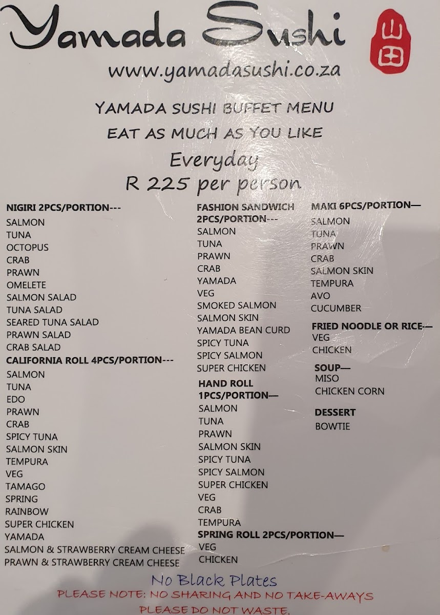 Yamada Sushi Menu